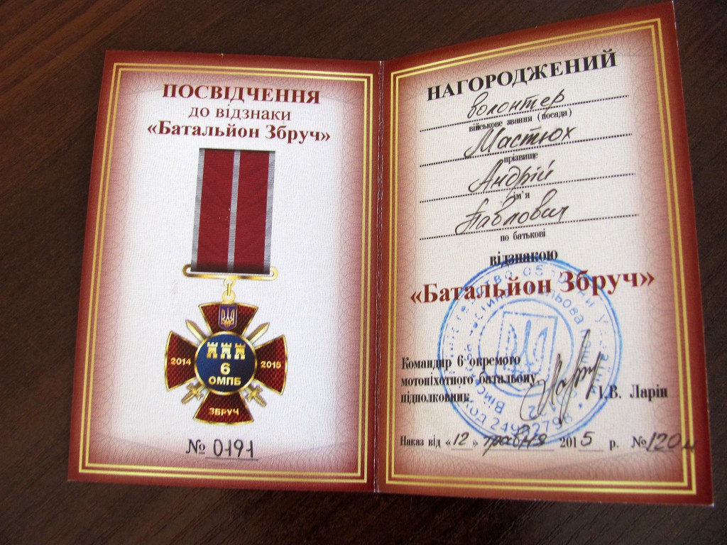 З рук командира батальйону Ігоря Ларіна відзнаку отримав депутат Тернопільської міської ради, директор КП «Тернопільелектротранс» Андрій Павлович Мастюх.
